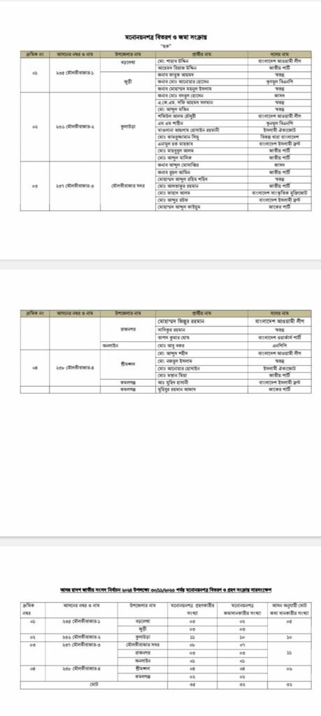 মৌলভীবাজারে ৪টি সংসদীয় আসনে ৩২ জনে মনোনয়নপত্র দাখিল