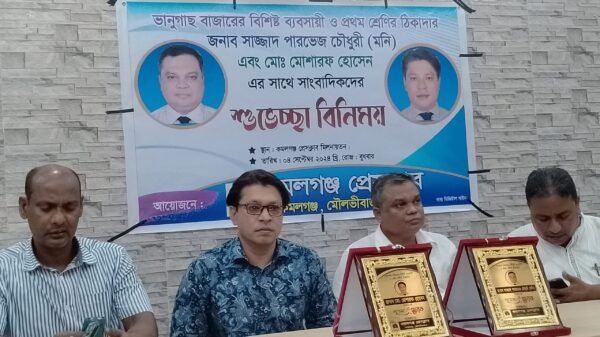 কমলগঞ্জ প্রতিনিধি:: প্রথমবারের মতো সচিবদের সঙ্গে বৈঠকে ড. মুহাম্মদ ইউনূস মৌলভীবাজাররে কমলগঞ্জ প্রেসক্লাব নেতৃবৃন্দের সাথে কানাডায় গমন উপলক্ষে উপজেলার ভানুগাছ বিশিষ্ট ব্যবসায়ী ও প্রথম শ্রেণির ঠিকাদার সজ্জাদ পারভেজ (মনি) ও